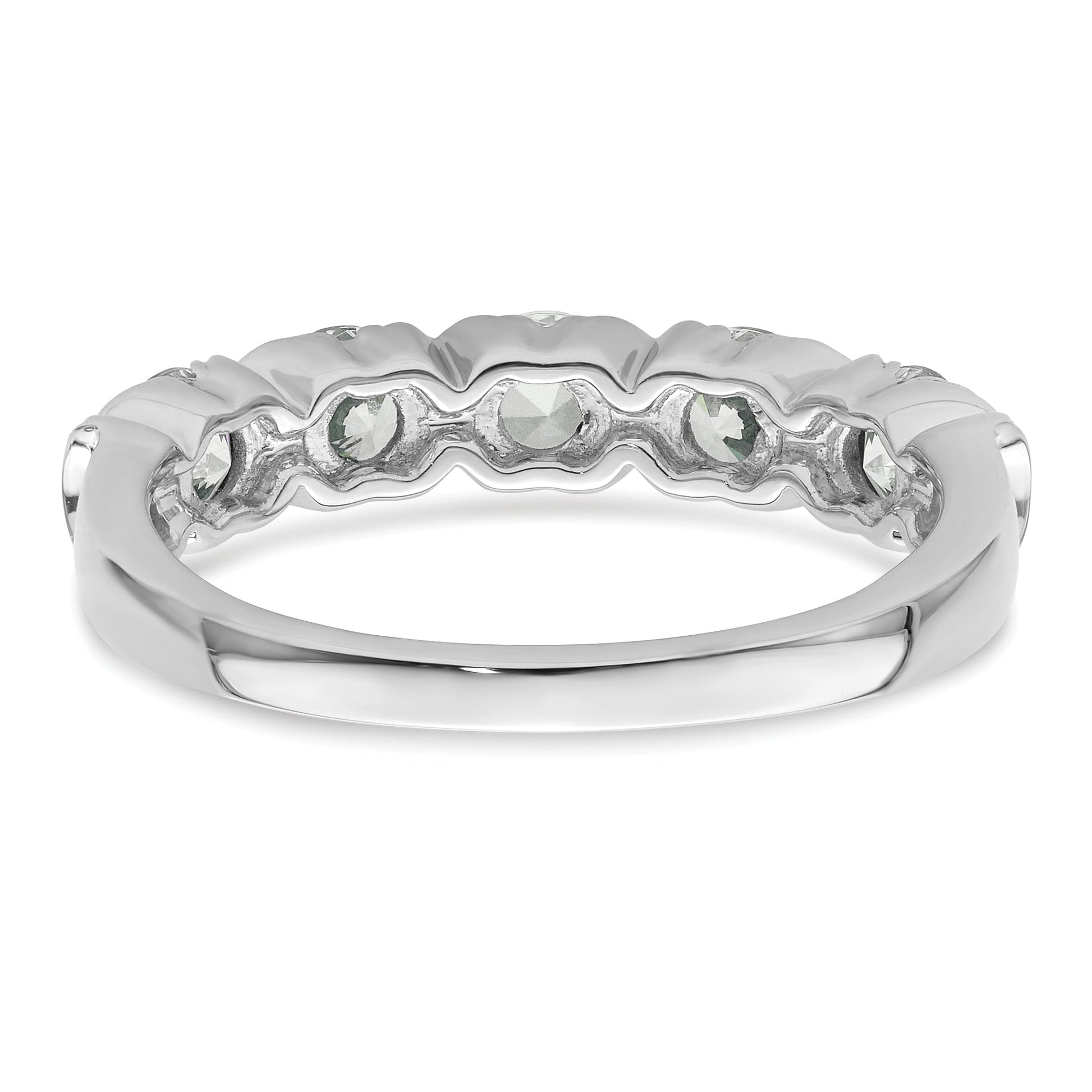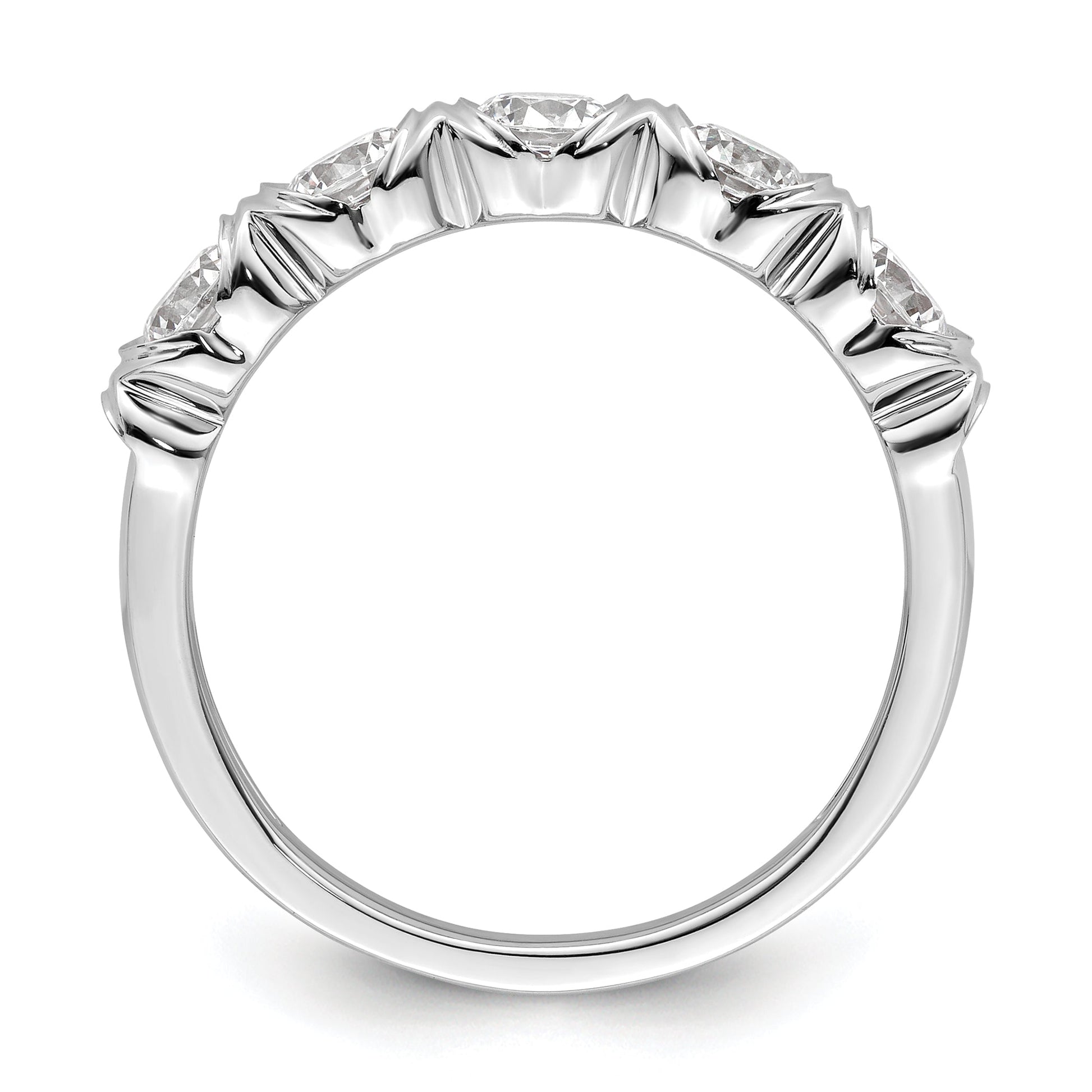 Create a lasting memory with this elegant and timeless 1.07ct. CZ Solid Real 14K White Gold 5-Stone Comp. Wedding Band Ring. Crafted from authentic 14K white gold, this ring promises a lasting shine and unmatched quality. The AAA quality cubic zirconia stones are hand-set and perfectly polished, giving this ring a stunning and sophisticated sparkle. Upgrade to real diamonds if desired and contact us for pricing. This ring is perfect for special occasions like birthdays, anniversaries, graduations, weddings, engagements, bridal parties, Mother's Day, Valentine's Day, Christmas, or just to say I love you. It's the safe choice for travel and completes any outfit. This ring comes with a 30-day money-back guarantee, a complimentary gift box, and superior customer service from our USA-based company. With a tapered band width ranging from 1.75 to 3.9 mm and an open-back profile, this real 14K gold ring is the perfect gift for a loved one or as a treat for yourself.
