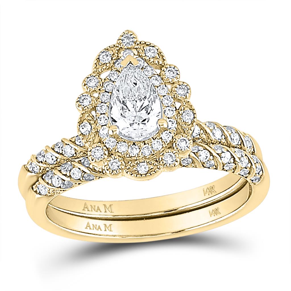 Introducing the stunning "1 1/3 CT-Diamond 1/2CT-CPEAR BRIDAL SET CERTIFIED", crafted from 14kt Yellow Gold with an approximate gram weight of 5.4982. The bridal set boasts a total gemstone carat...