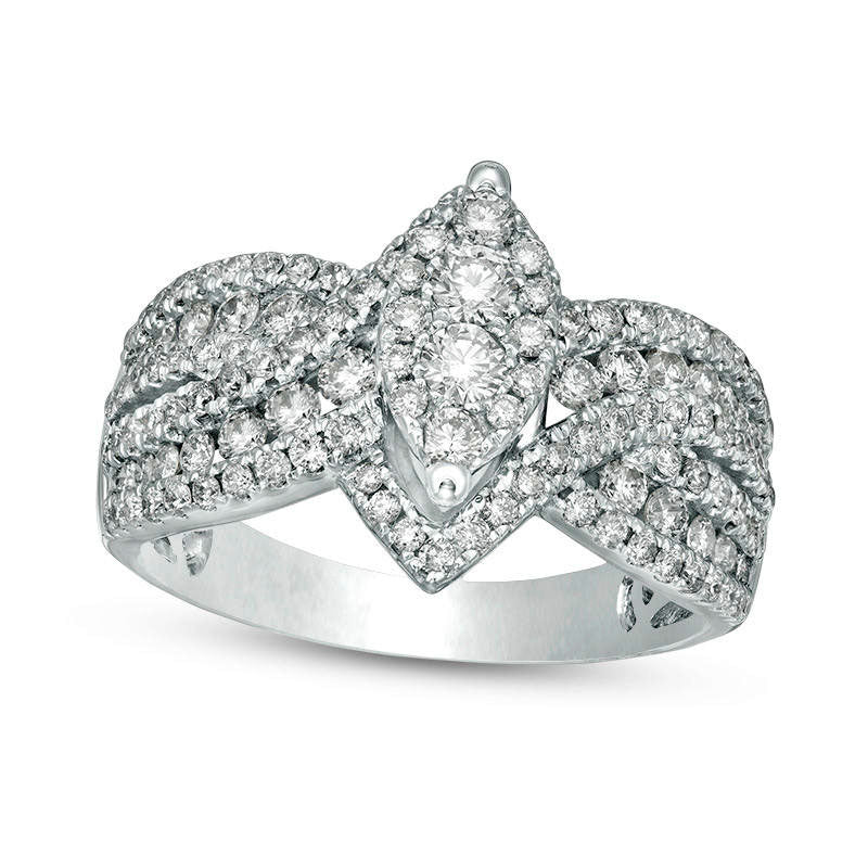1.17 CT. T.W. Composite Natural Diamond Marquise Bypass Frame Multi-Row Engagement Ring in Solid 10K White Gold