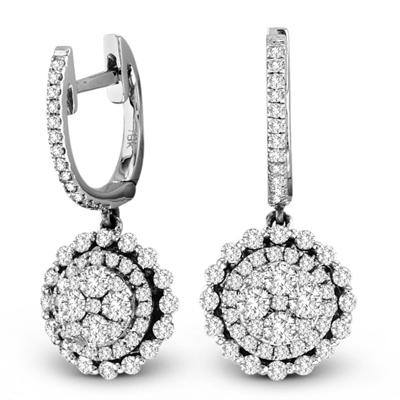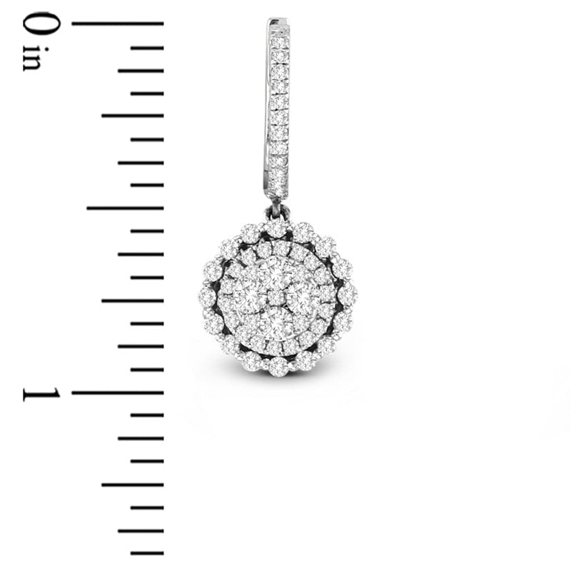 1.17 CT. T.W. Diamond Frame Cluster Drop Earrings in 18K White Gold (G/SI1)