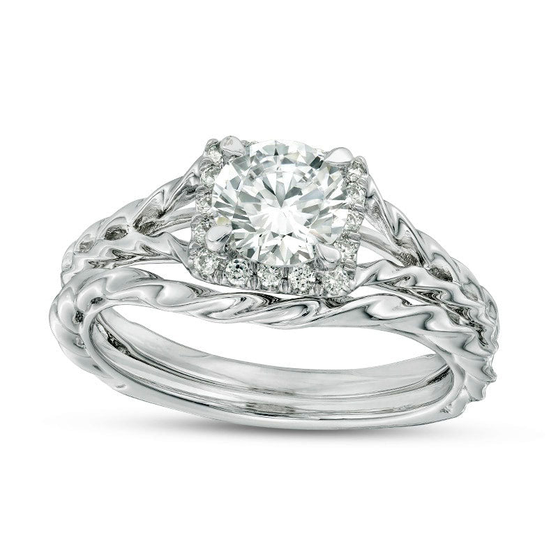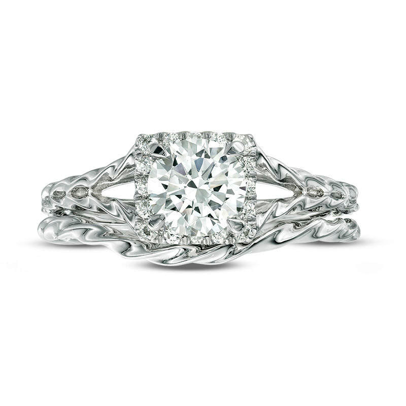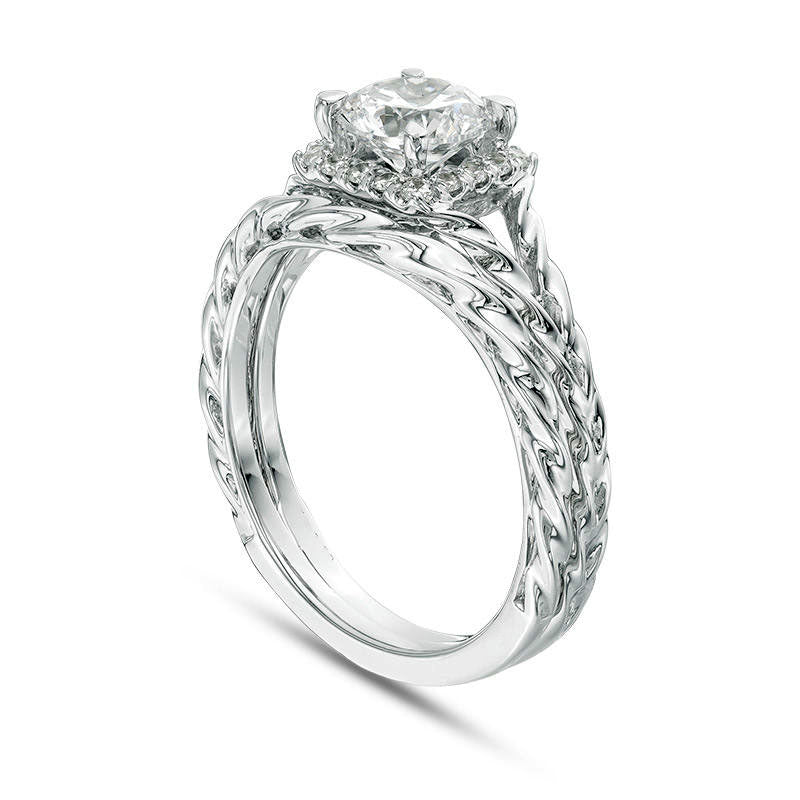 The 1-1/6 CT. T.W. Diamond Square Frame Twist Rope Bridal Set in 14K White Gold is an impressive piece that is destined to capture attention. Exquisitely crafted from fine 14K...