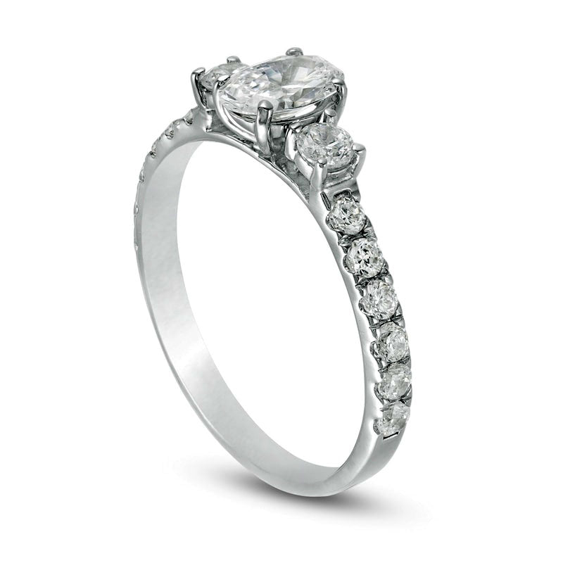 1.17 CT. T.W. Natural Diamond Three Stone Engagement Ring in Solid 14K White Gold