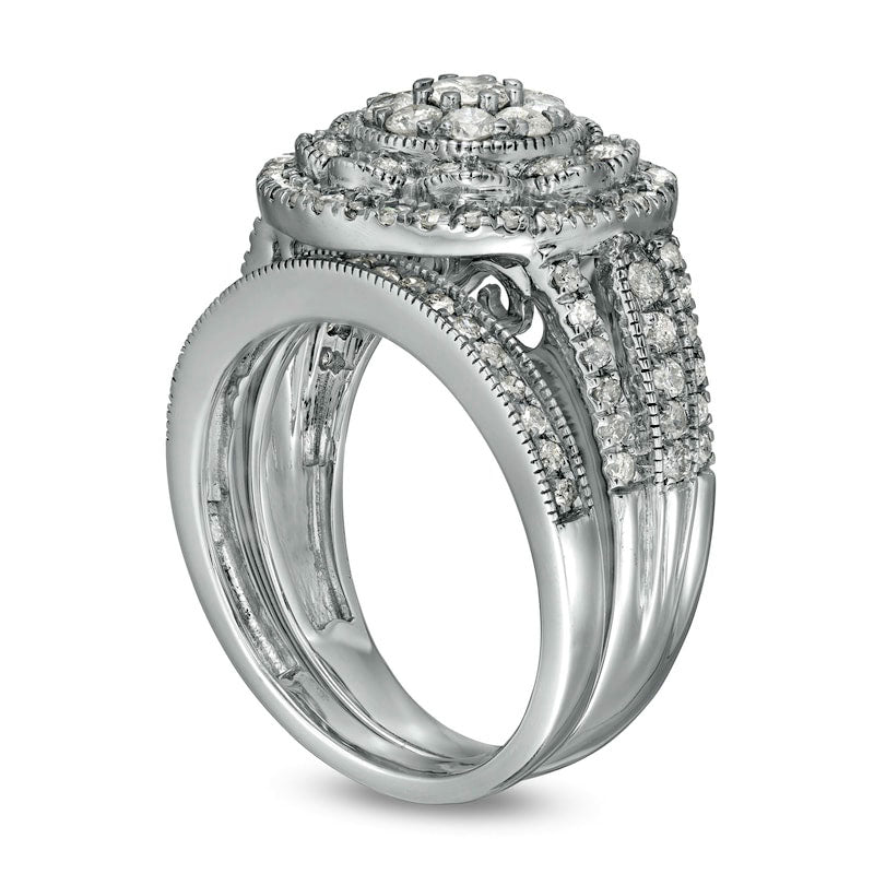 1.25 CT. T.W. Composite Natural Diamond Multi-Row Antique Vintage-Style Bridal Engagement Ring Set in Solid 10K White Gold