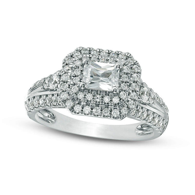 1.25 CT. T.W. Emerald-Cut Natural Diamond Double Frame Engagement Ring in Solid 14K White Gold