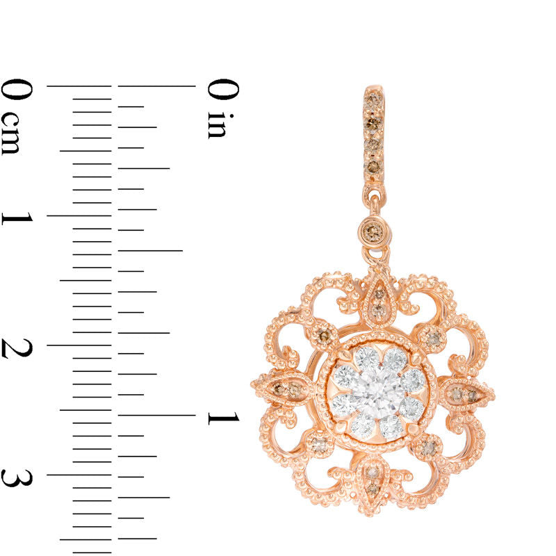1.25 CT. T.W. Enhanced Champagne and White Diamond Filigree Vintage-Style Drop Earrings in 10K Rose Gold