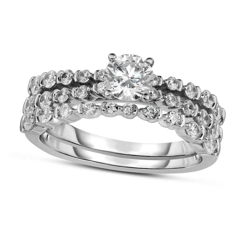 1.25 CT. T.W. Natural Diamond Bridal Engagement Ring Set in Solid 14K White Gold