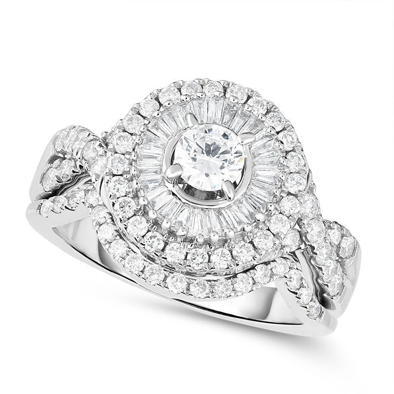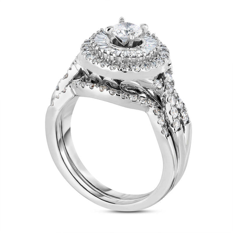 1.25 CT. T.W. Natural Diamond Double Frame Twist Bridal Engagement Ring Set in Solid 14K White Gold