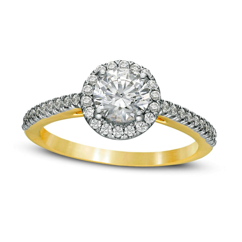 This stunning diamond engagement ring is the epitome of timeless elegance, perfectly suited to the unique style of your beloved, both now and for years to come. Crafted in 14K gold, it features a beautifully sparkling 1 ct. diamond at its center, surrounded by a halo of smaller diamonds, and further accentuated by diamond-lined shank. Behind the center stone, a gallery of bezel-set diamonds adds a touch of extra shimmer. With a total weight of 1-1/4 cts. t.w. of diamonds and a dazzling polished finish, this is the perfect choice for creating an unforgettable moment that will last a lifetime.