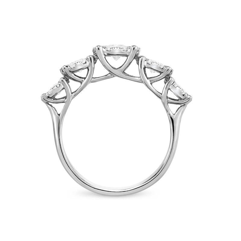 Celebrate a special occasion with this stunning diamond anniversary band. Made from premium 14K white gold, this exquisite design features five brilliant diamonds, with the center stone weighing 1/5 ct....