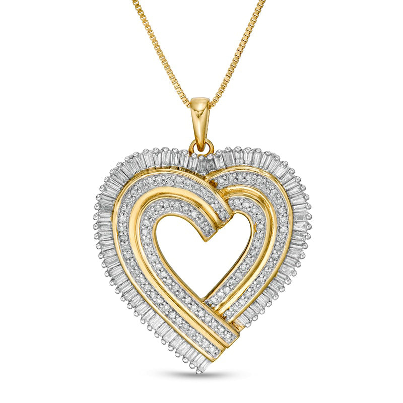 1.25 CT. T.W. Natural Diamond Layered Ribbon Heart Pendant in Sterling Silver with 14K Gold Plate