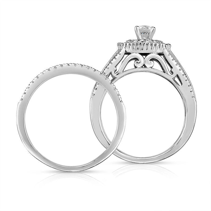 Looking for the perfect way to say "I do?" Look no further than this stunning diamond bridal set. Made with 14K white gold, the engagement ring features a gorgeous 1/3...
