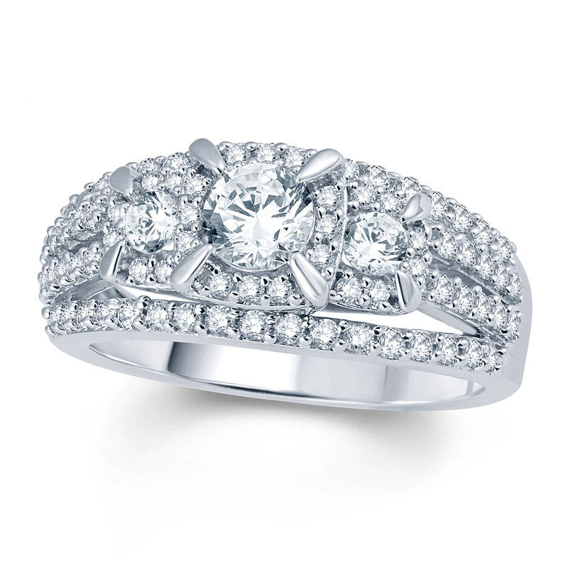 1.25 CT. T.W. Natural Diamond Three Stone Frame Multi-Row Engagement Ring in Solid 14K White Gold
