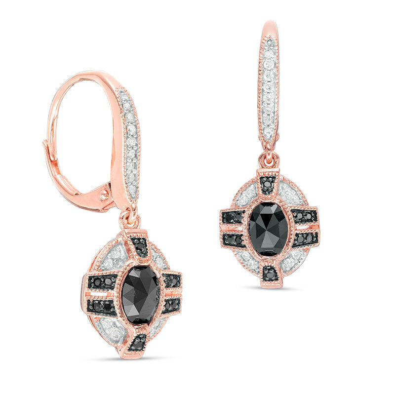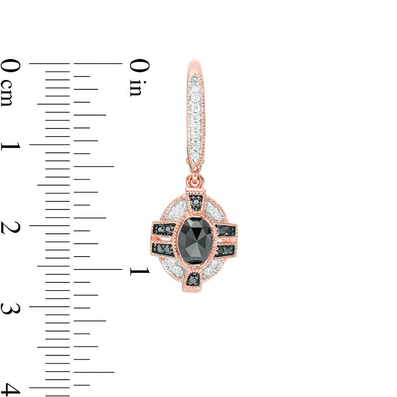 1.25 CT. T.W. Oval Enhanced Black and White Diamond Frame Vintage-Style Drop Earrings in 10K Rose Gold