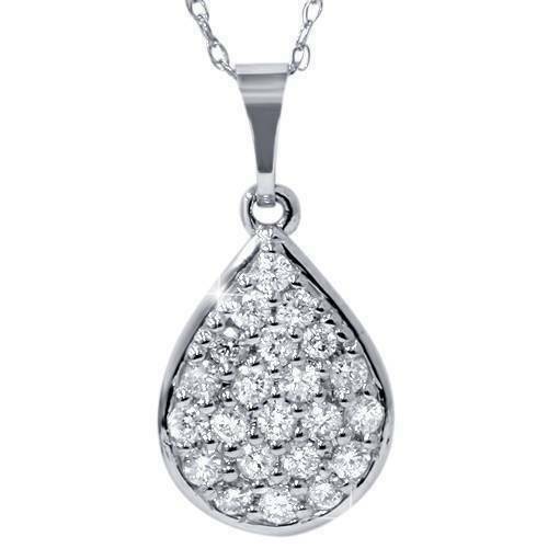1/2ct Diamond Pave Diamond Pear Shape Cluster Pendant 14K White Gold 3/4 Tall"