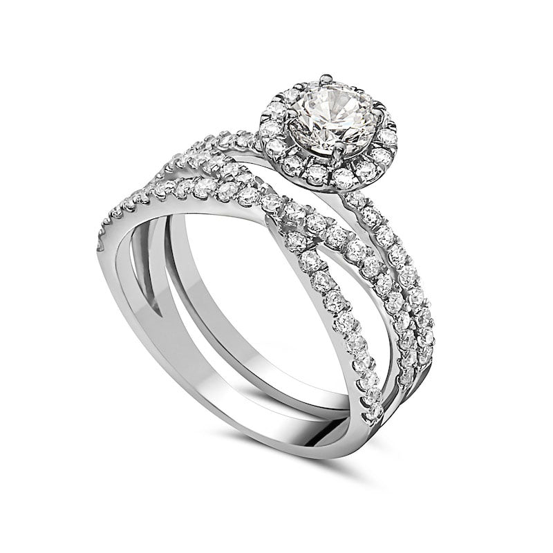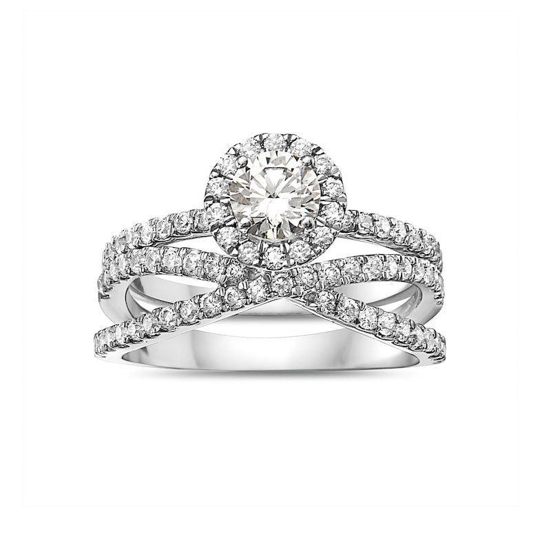 1.33 CT. T.W. Natural Diamond Frame Criss-Cross Bridal Engagement Ring Set in Solid 14K White Gold