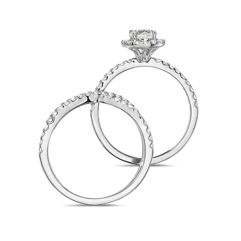 This beautiful diamond bridal set is perfect for starting your love story. It's made with 14K white gold and features a 1/2 ct. diamond surrounded by smaller diamonds on the...