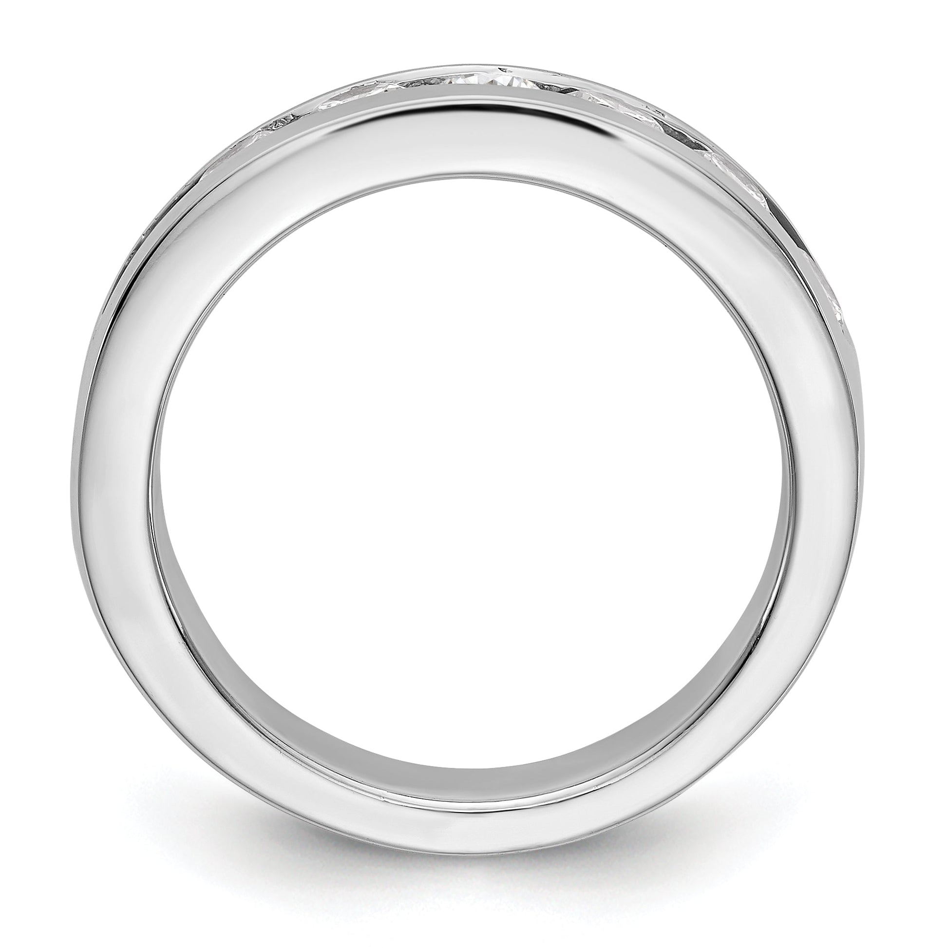 Measuring 4.4mm in width, this ring is casted with a complete set of stones (including side stone mountings) and is sized to fit any finger between sizes 6 and 8, in increments of 0.25. Designed with a channel setting, the 9 round stones - each measuring 3.4mm - are polished and faceted to perfection for maximum sparkle. Featuring a closed back and weighing in at less than 2.4mm thick, this solid real gold ring is the perfect way to celebrate your special day in style. Shop now and experience the beauty and quality of Goldia!