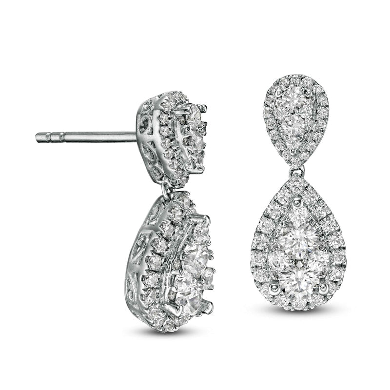 1.38 CT. T.W. Composite Diamond Frame Teardrop Earrings in 14K White Gold
