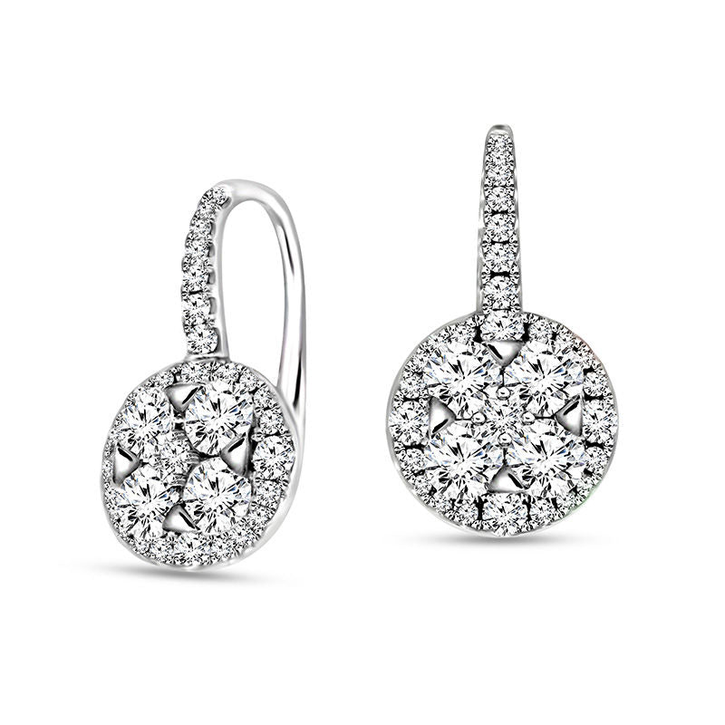 1.38 CT. T.W. Quad Diamond Frame Vintage-Style Drop Earrings in 14K White Gold