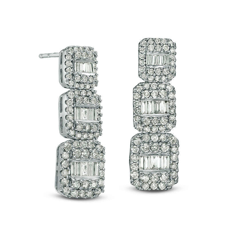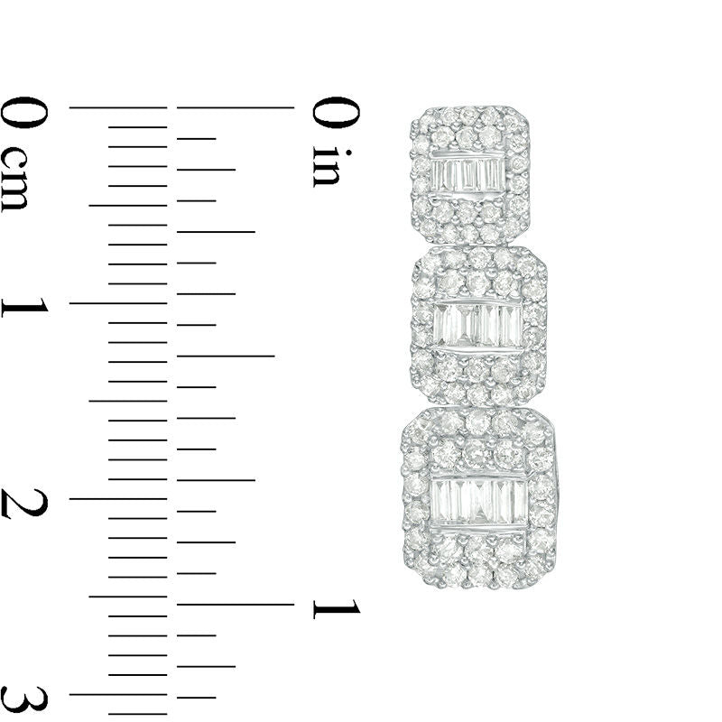 1.5 CT. T.W. Composite Baguette and Round Diamond Drop Earrings in 10K White Gold