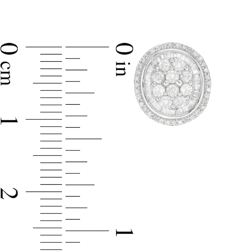 1.5 CT. T.W. Composite Baguette and Round Diamond Oval Frame Stud Earrings in 10K White Gold