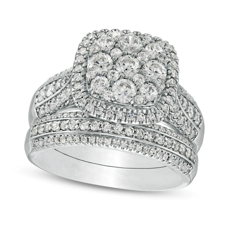 1.5 CT. T.W. Composite Natural Diamond Cushion Frame Multi-Row Bridal Engagement Ring Set in Solid 10K White Gold