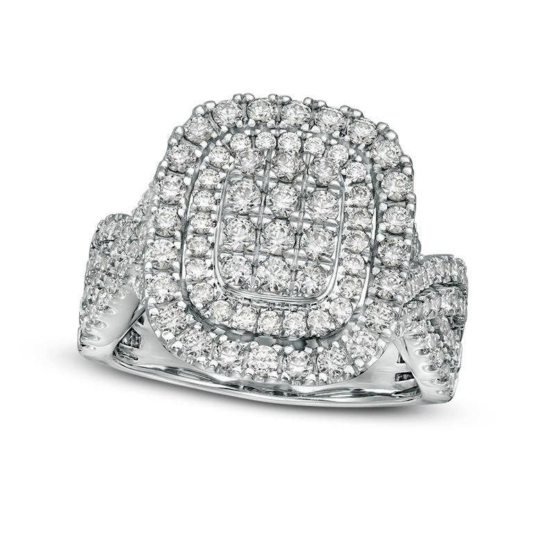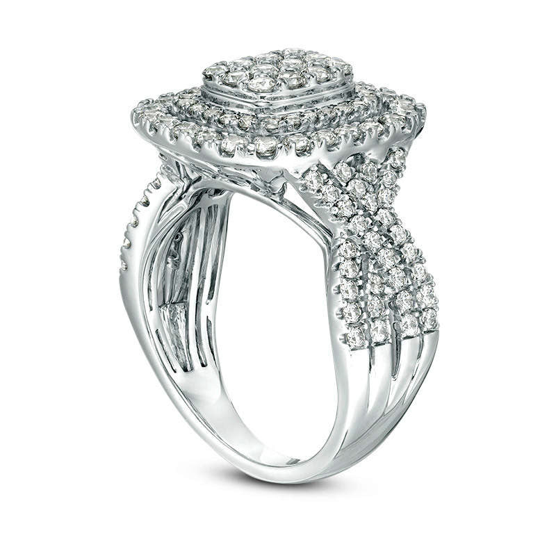 1.5 CT. T.W. Composite Natural Diamond Double Elongated Cushion Frame Crossover Engagement Ring in Solid 10K White Gold