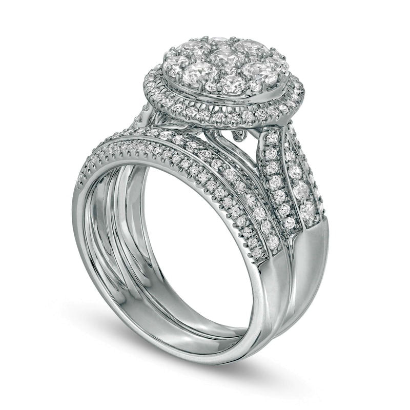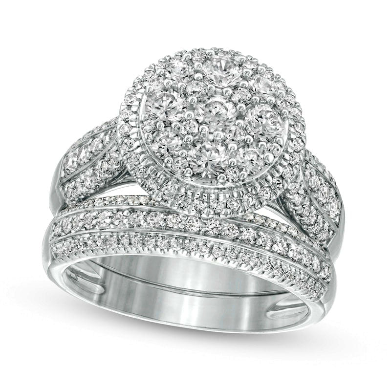 1.5 CT. T.W. Composite Natural Diamond Frame Multi-Row Bridal Engagement Ring Set in Solid 10K White Gold