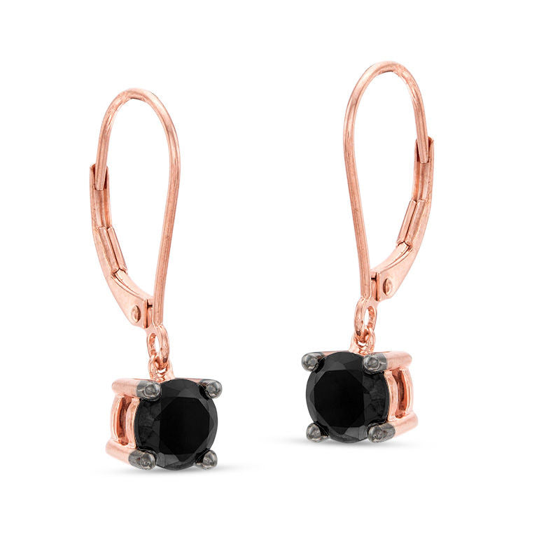 1.5 CT. T.W. Enhanced Black Diamond Solitaire Drop Earrings in 10K Rose Gold