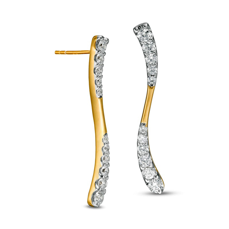 1.5 CT. T.W. Journey Diamond Linear Wave Drop Earrings in 10K Gold
