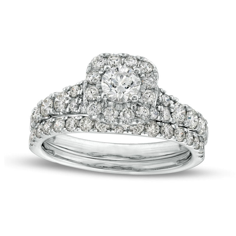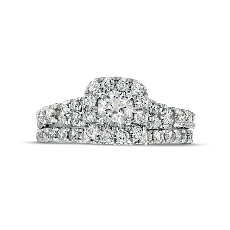 1.5 CT. T.W. Natural Diamond Cushion-Shaped Frame Split Shank Bridal Engagement Ring Set in Solid 10K White Gold