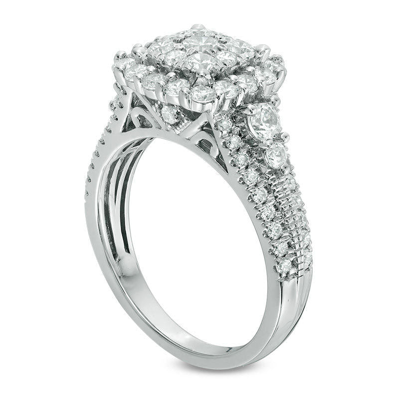 1.5 CT. T.W. Natural Diamond Double Square Frame Antique Vintage-Style Engagement Ring in Solid 14K White Gold