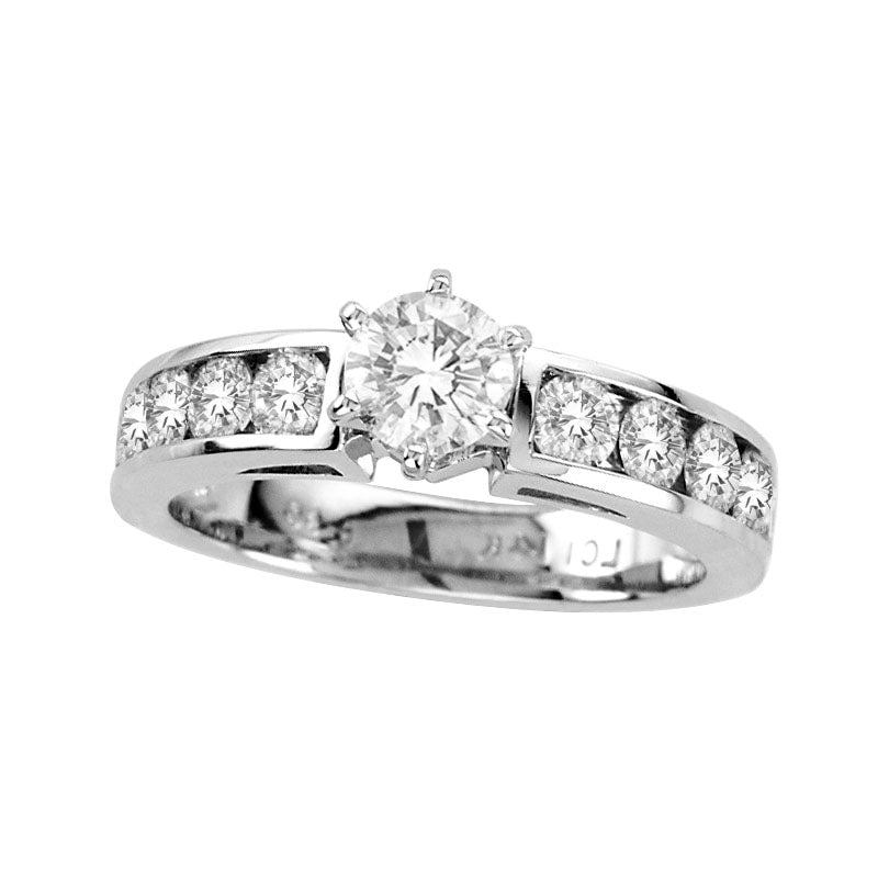 Looking for an engagement ring that will make your partner's heart skip a beat? Look no further than this stunning 14K white gold diamond ring. Featuring a gorgeous 1/2 ct. round diamond centerpiece, this classic design boasts a durable six-prong setting and a diamond-lined shank that amps up the sparkle. With a total weight of 1-1/2 cts. t.w. of diamonds, this ring is sure to dazzle for a lifetime of love. Get ready to take your partner's breath away with this timeless beauty.