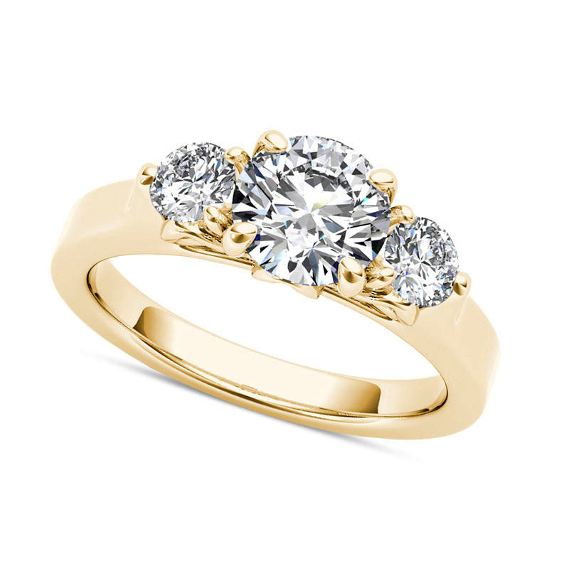 1.5 CT. T.W. Natural Diamond Three Stone Engagement Ring in Solid 14K Gold
