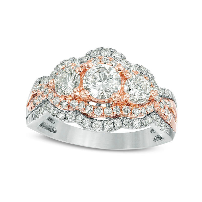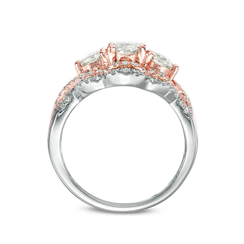 1.5 CT. T.W. Natural Diamond Three Stone Scallop Bypass Twist Engagement Ring in Solid 10K Two-Tone Gold