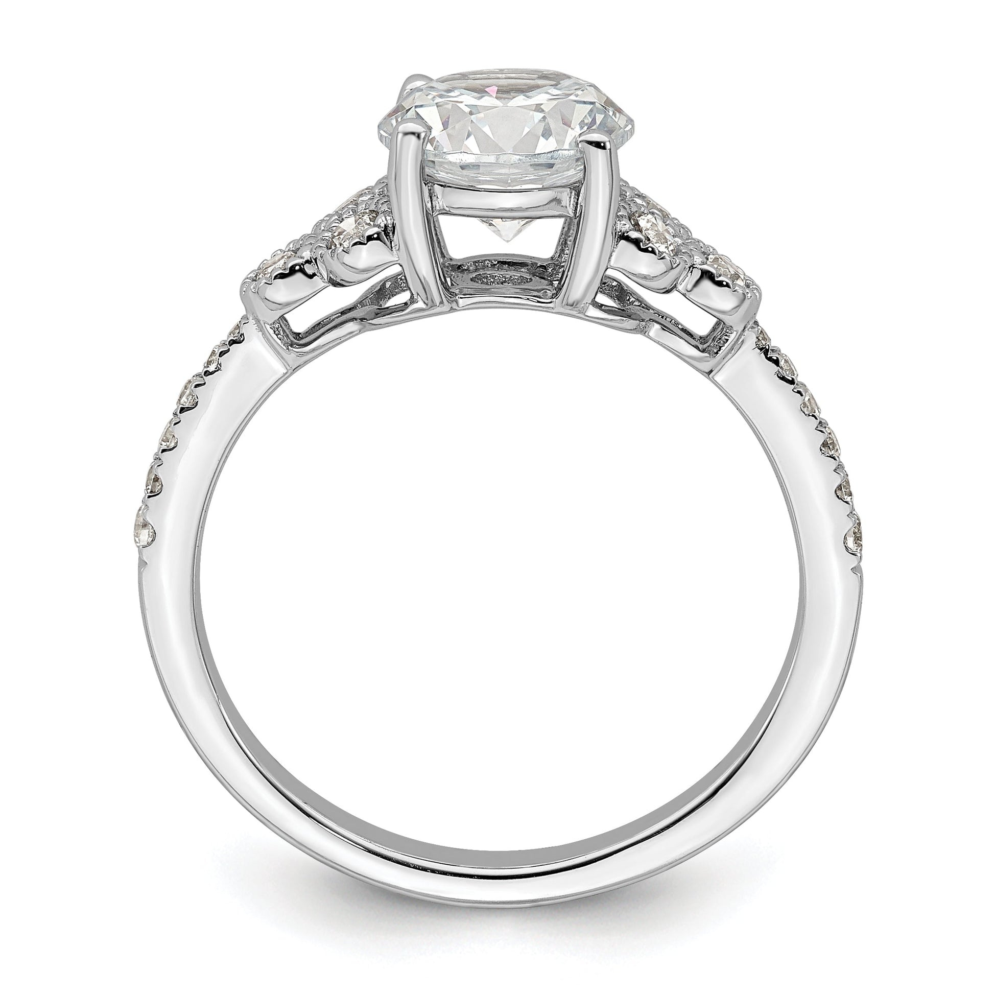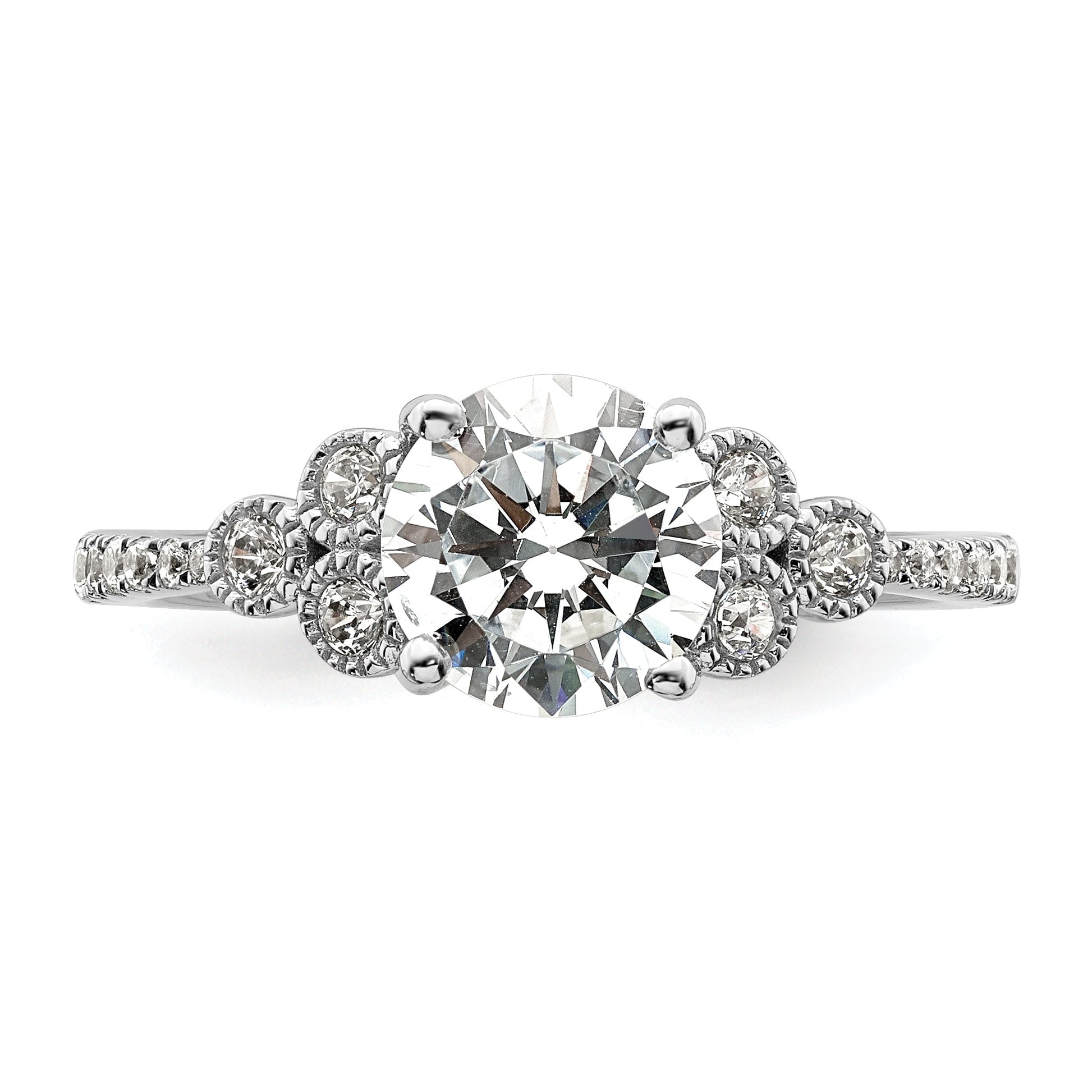 This engagement ring features a solid 14k gold band with a tapered width of 1.1 to 1.7 mm and a polished finish. The rhodium plating ensures long-lasting shine. This semi-mount ring can be sized to fit your finger perfectly and has a head height of 6.3 mm. It's a beautiful choice for the special occasion of your life. This elegant ring has an open-back profile type and a round, four-prong head type that secures the center stone in place. The ring top length is 15.2mm and width is 7.4mm.