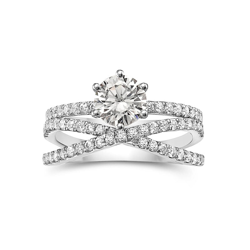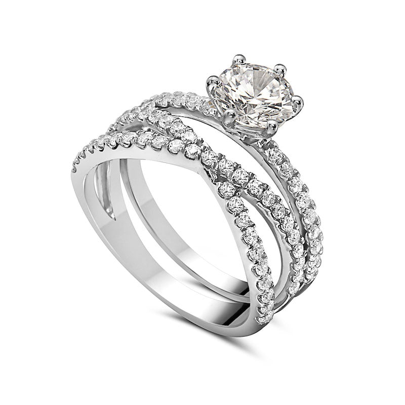 1.63 CT. T.W. Natural Diamond Criss-Cross Bridal Engagement Ring Set in Solid 14K White Gold