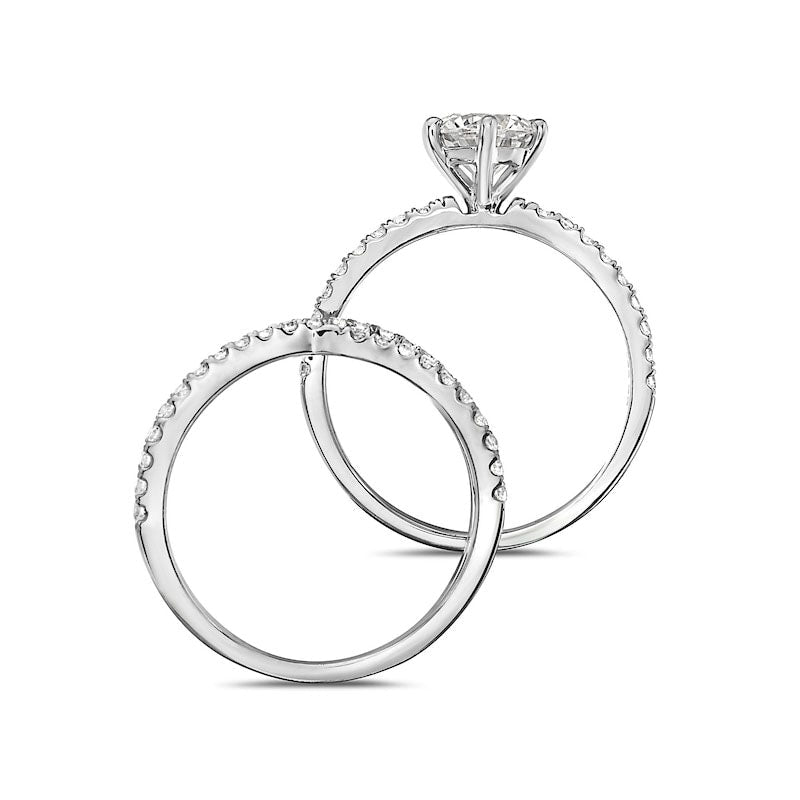 Celebrate your love and commitment with a dazzling bridal set. Crafted in 14K white gold, this exquisite set features a breathtaking engagement ring with a sparkling 1 ct. diamond held...
