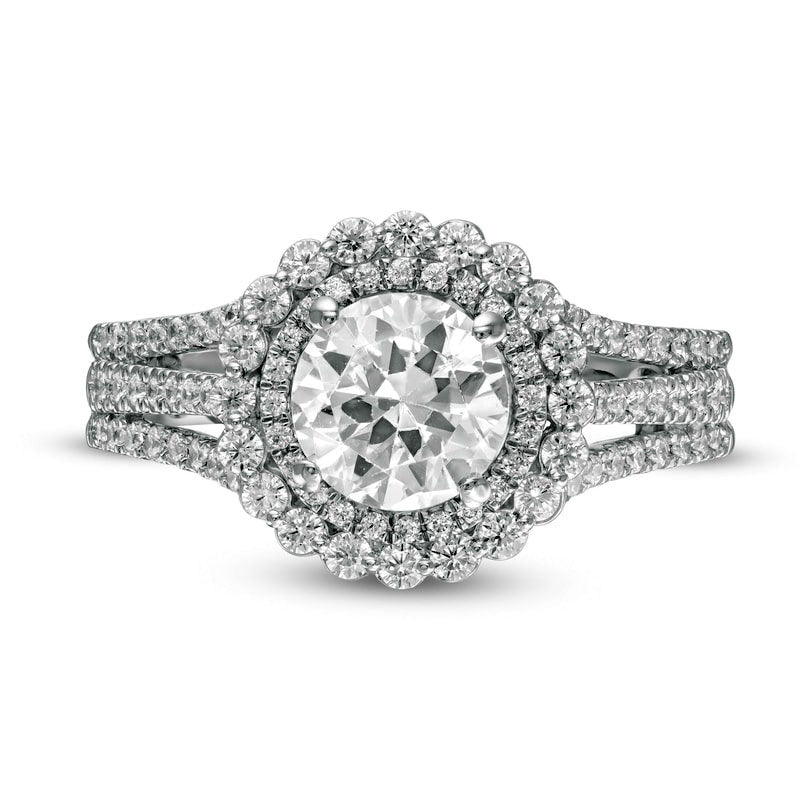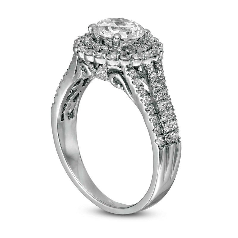 1.63 CT. T.W. Natural Diamond Frame Multi-Row Split Shank Engagement Ring in Solid 10K White Gold