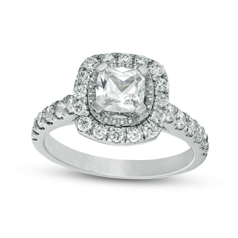 1.75 CT. T.W. Cushion-Cut Natural Diamond Frame Engagement Ring in Solid 14K White Gold