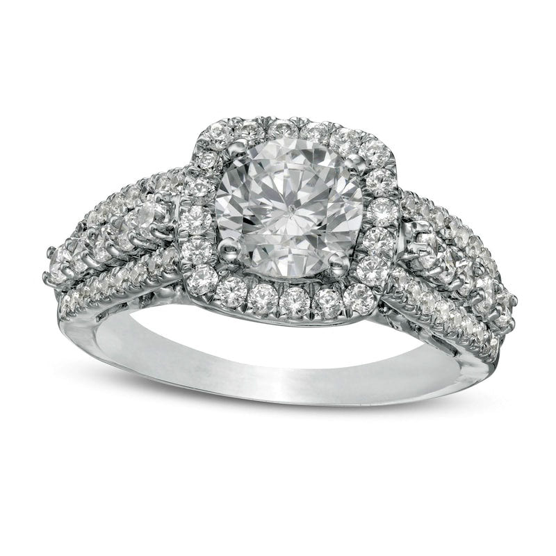 1.75 CT. T.W. Natural Diamond Cushion Frame Engagement Ring in Solid 10K White Gold
