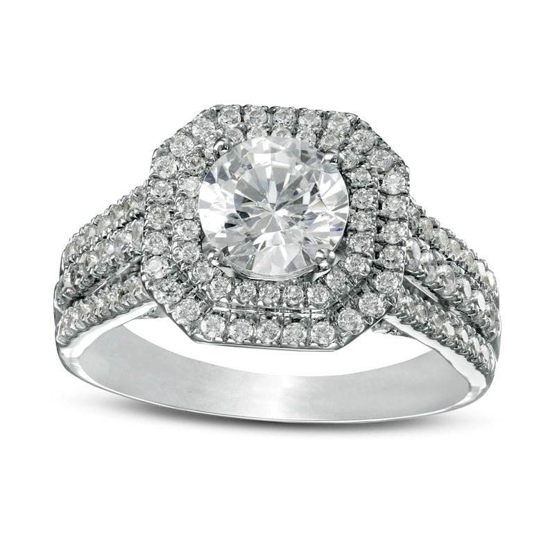1.75 CT. T.W. Natural Diamond Double Octagon Frame Engagement Ring in Solid 10K White Gold