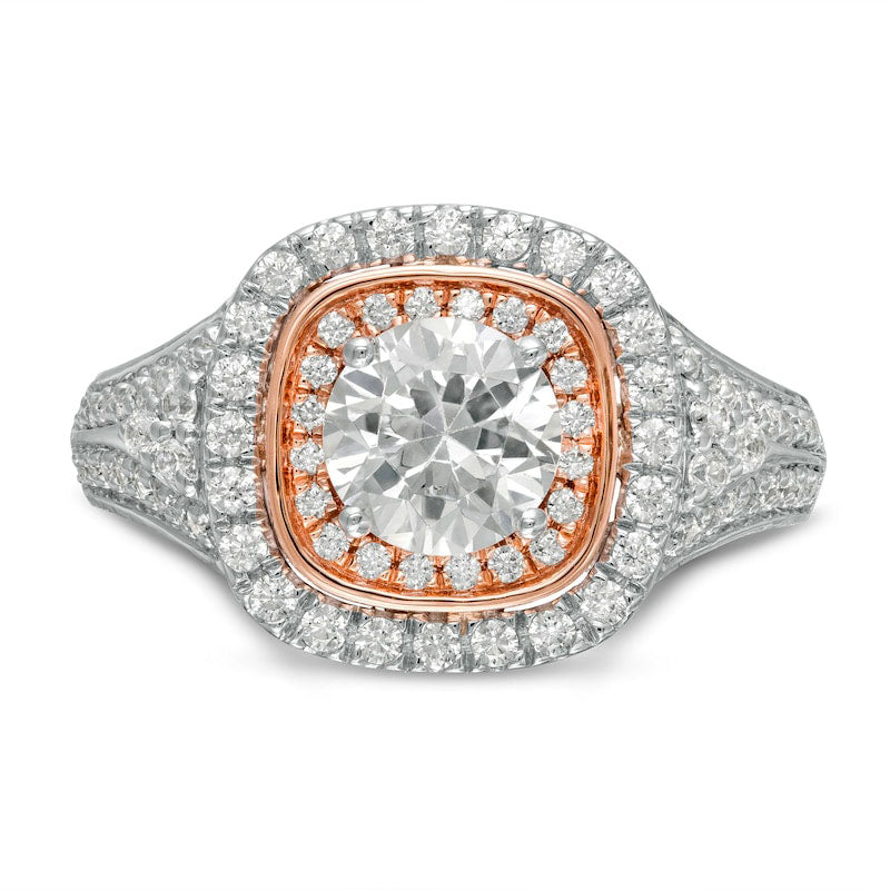 1.88 CT. T.W. Natural Diamond Double Cushion Frame Engagement Ring in Solid 10K Two-Tone Gold