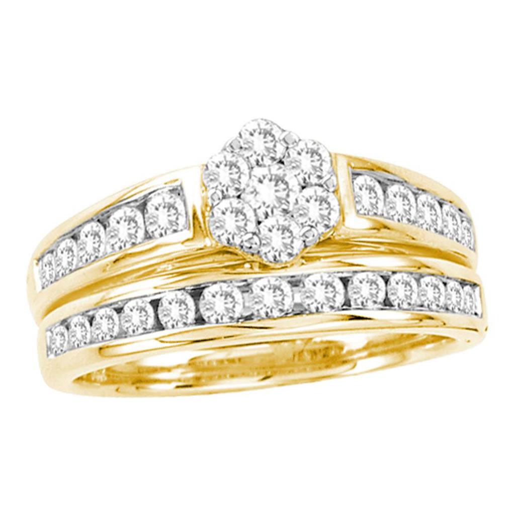 The '1 CT-Diamond FLOWER BRIDAL SET' is a stunning piece of jewelry crafted in 14kt yellow gold and weighing approximately 5.5702 grams. It boasts a total gemstone carat weight of...