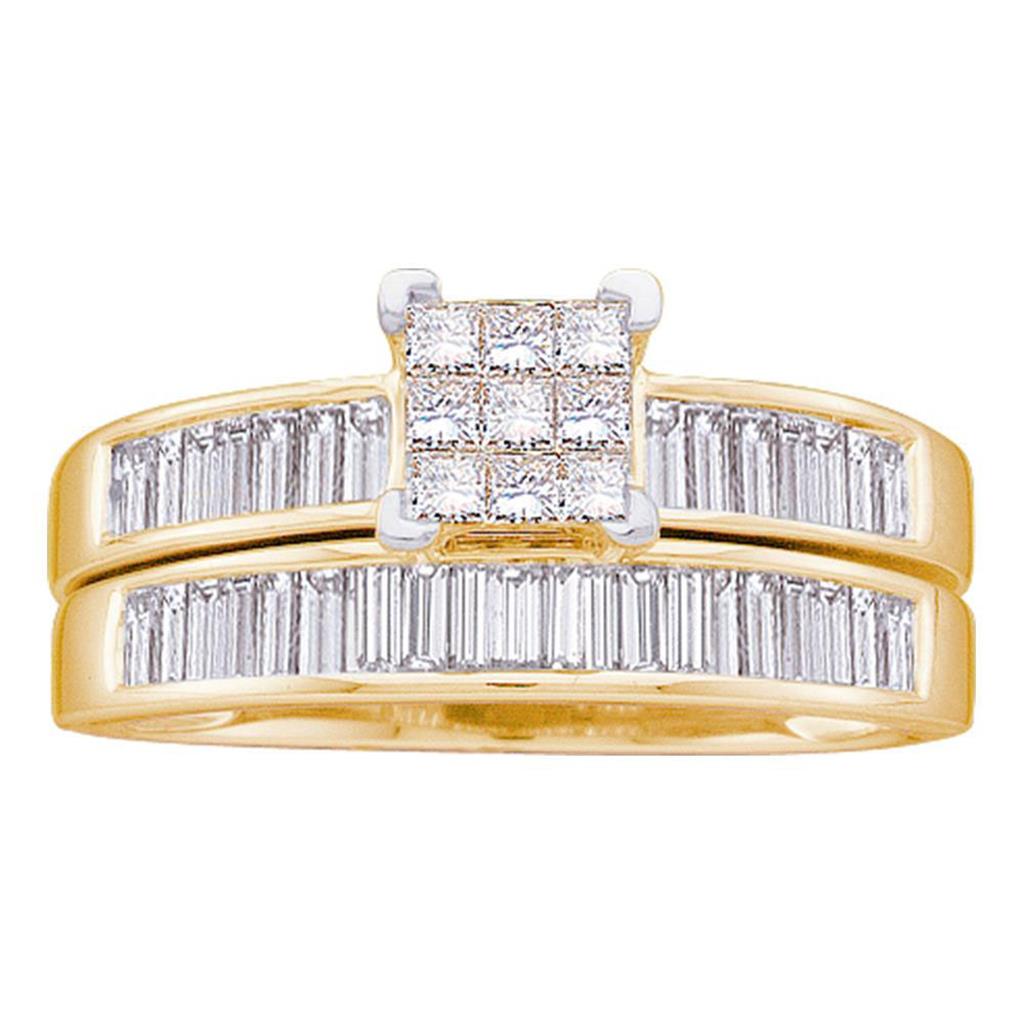 The product is called the "1 CT-Diamond INVISIBLE BRIDAL SET". This stunning piece of jewelry is made of high-quality 14kt yellow gold and weighs approximately 5.51 grams. The total gemstone...