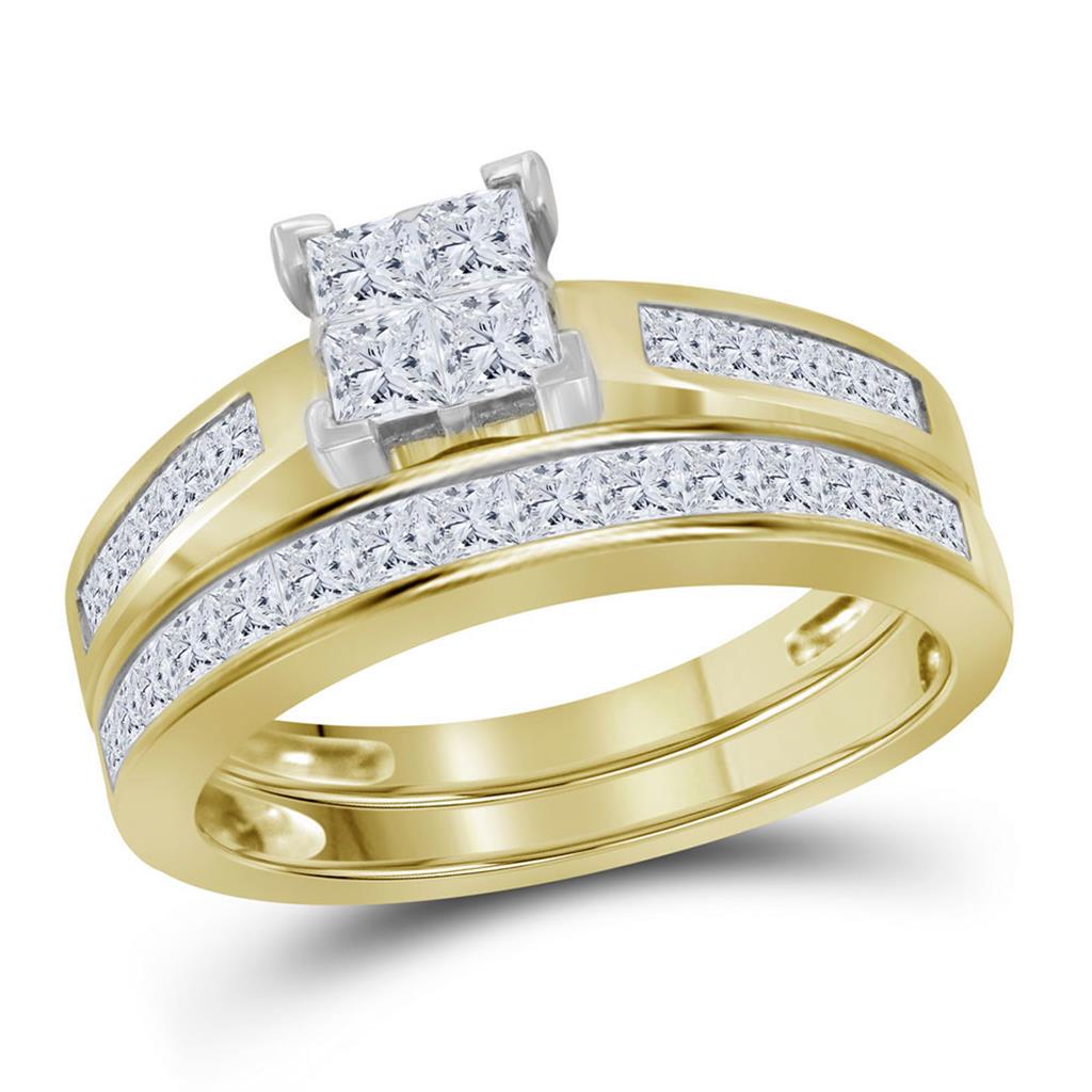 This is a stunning 14kt yellow gold bridal set featuring a 1 carat princess-cut diamond that is elegantly set in an invisible setting. The total weight of the set is...