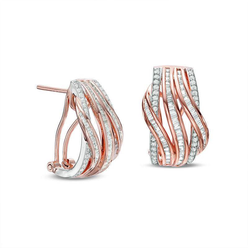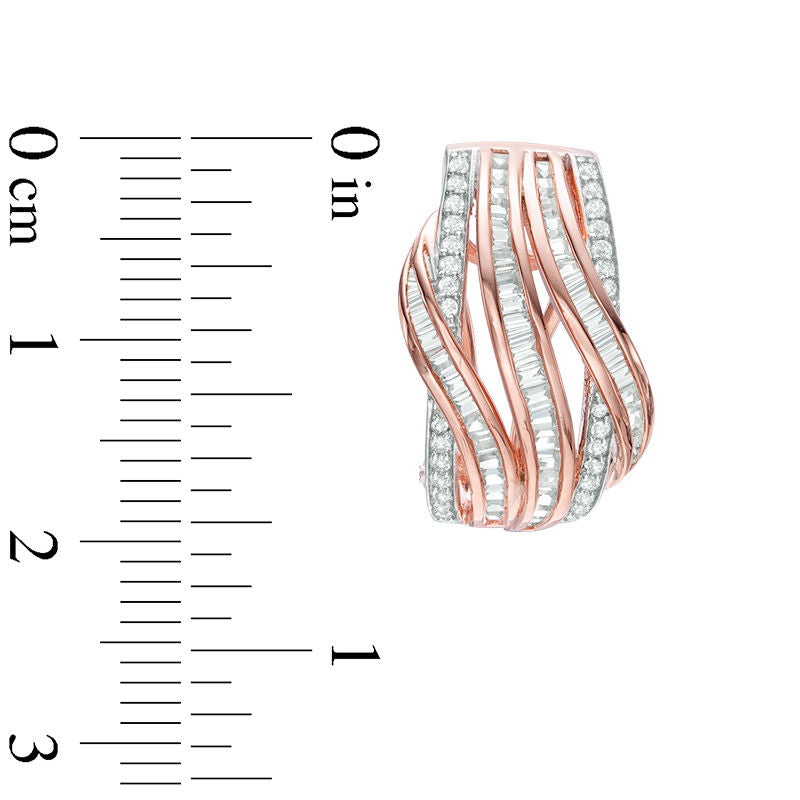 1 CT. T.W. Baguette and Round Diamond Multi-Row Wave Drop Earrings in 10K Two-Tone Gold