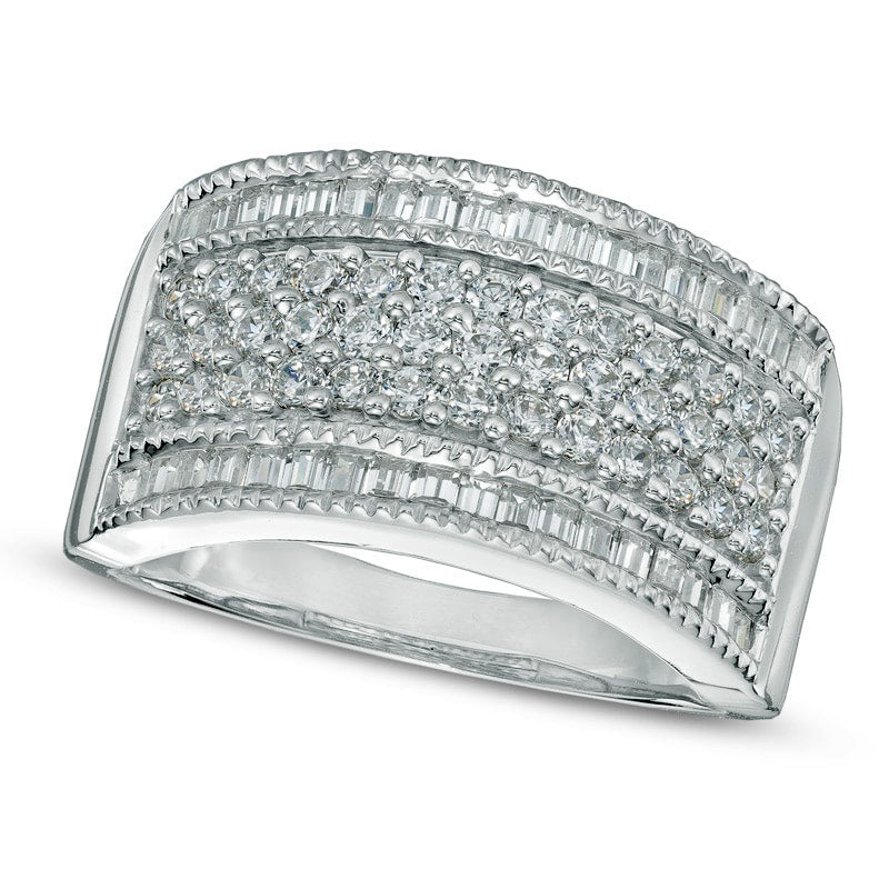 1.0 CT. T.W. Baguette and Round Natural Diamond Multi-Row Band in Solid 10K White Gold