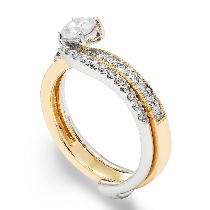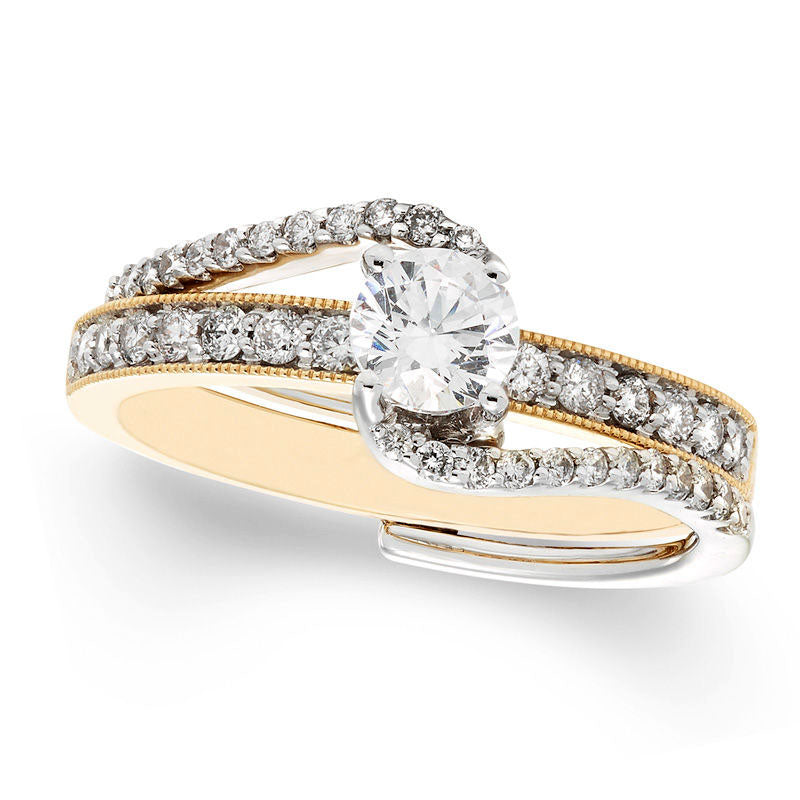 1.0 CT. T.W. Certified Natural Diamond Bypass Bridal Engagement Ring Set in Solid 14K Two-Tone Gold (I/I1)