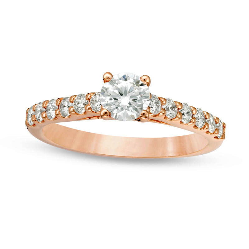 Make your special moment even more memorable with this exquisite certified diamond engagement ring. Delicately crafted in lustrous 14K rose gold, this ring boasts a breathtaking 1/2 ct. diamond at its center, accompanied by a slimmer shank lined with 1/20 ct. diamonds. All the diamonds flaunt a color rank of I and clarity of I1, ensuring their exceptional quality. With a total weight of 1 ct. t.w. of diamonds, this ring is sure to dazzle and enchant. The ring is elegantly polished to a bright shine, enhancing its irresistible charm. It comes with a certificate featuring a photo and description of the diamond, attesting to its superior quality and allowing for easy insurance purposes. You won't want to miss out on starting a beautiful journey with this stunning engagement ring.